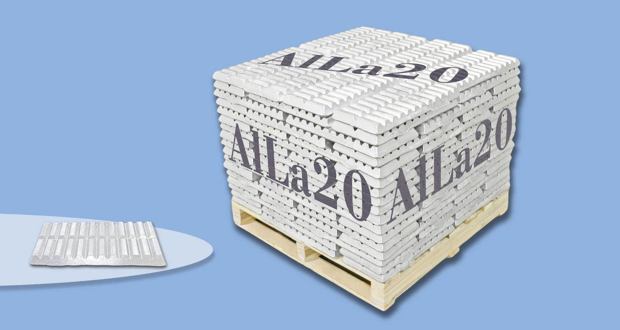 1、本品為含鑭18.0~22.0%的鋁鑭中間合金,是鋁稀土中間合金的一種,可細化晶粒,凈化熔體、提高合金的強度和塑性,改善加工性能。