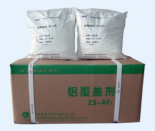 (1). AF6 is sodium free covering flux. Spread out and cover all over the surface of the molten Al, makes the melt isolated from air, preventing absorbed H2 in, preventing Al and Al alloys elements in the melt oxidized or burned up.